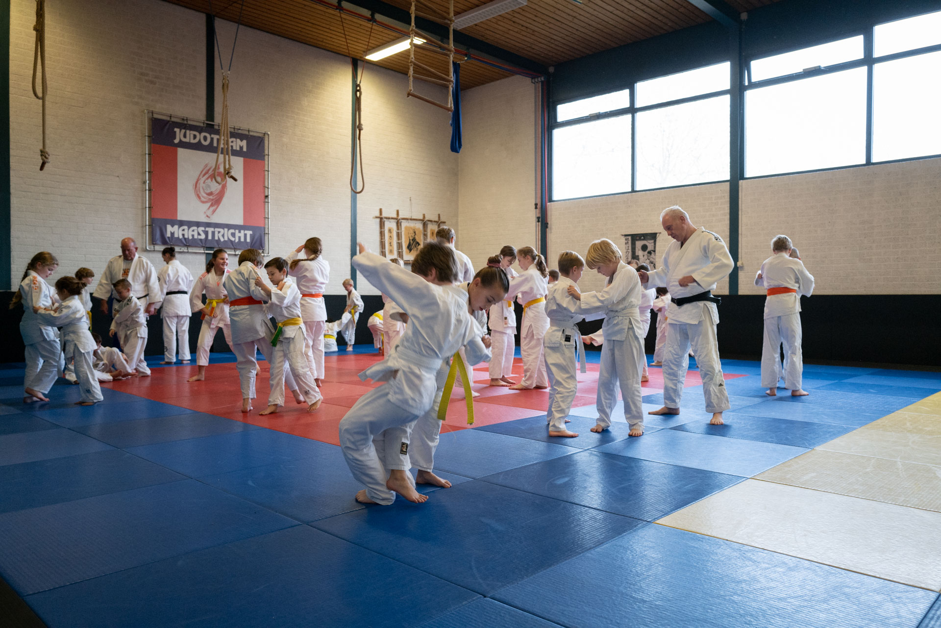 Judoka’s dragen tijdens de lessen een wit judopak en mogen een wit t-shirt onder het pak dragen. Buiten de mat dragen de judoka’s slippers!